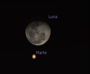 A las 22:00 horas, la distancia entre Marte y la superficie de la Luna, será de casi un radio lunar (15 minutos de arco) Quizás por el brillo lunar sea difícil la observación a simple vista; por lo que sería útil usar un binocular o un pequeño telescopio.